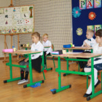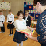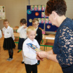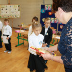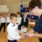 14 października swoje umiejętności szkolne zaprezentowali pierwszoklasiści. Po prezentacji wszystkich lekcji, wierszy i piosenek oraz złożeniu ślubowania, pani Dyrektor dokonała aktu pasowania na ucznia. Na zakończenie dzieci otrzymały piękne dyplomy oraz tradycyjne słodycze od rodziców. A pamiątkowym zdjęciom nie było końca…