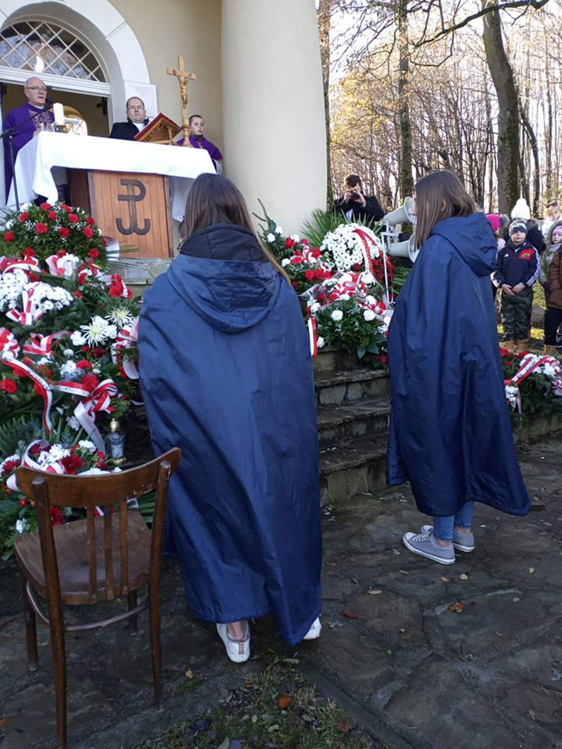 Modlitwą i wspólnym śpiewem uczciliśmy 103. rocznicę odzyskania przez nasz kraj niepodległości. 10 listopada odwiedziliśmy Cmentarz w Łowczówku, gdzie wzięliśmy udział we Mszy świętej w intencji poległych za naszą wolność i niepodległość. W czasie okolicznościowej homilii o. Michał Reinke przypomniał nam historię miejsca i przebieg bitwy oraz uświadomił nam, ile zawdzięczamy poległym tam rodakom. Później były kiełbaski z ogniska oraz śpiew pieśni i piosenek patriotycznych. Dziękujemy za wspólne świętowanie uczniom i nauczycielom ze Szkoły Podstawowej w Dąbrówce Tuchowskiej oraz Szkoły Podstawowej w Bistuszowej. Mamy nadzieję, że dla wszystkich była to doskonała lekcja historii i patriotyzmu.