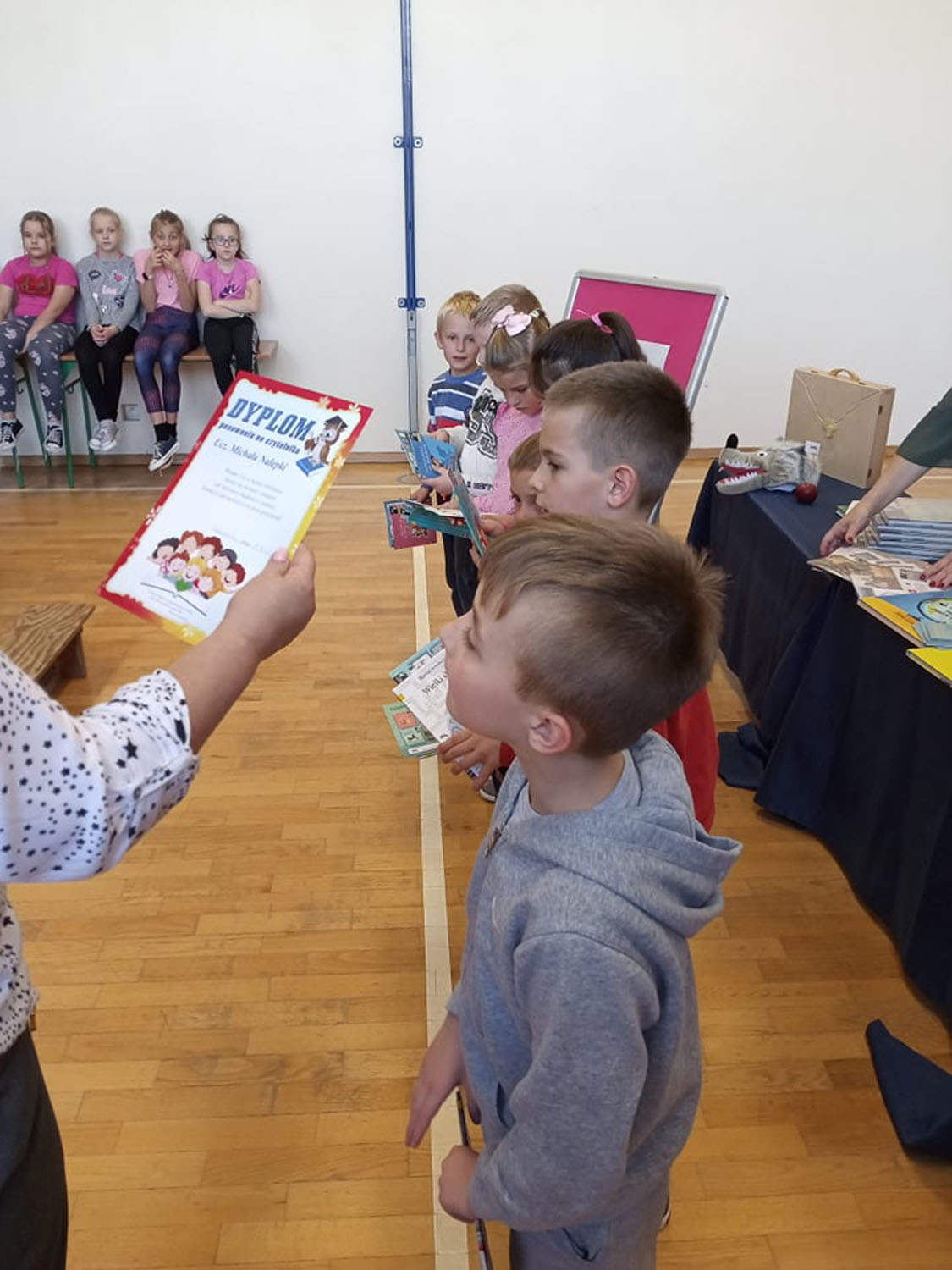 Na zakończenie spotkania odbyła się prezentacja książek, które zostaną wykorzystane do realizacji programu Czytanie ma moc, a uczniowie klas I-III otrzymali paszporty, w których będą dokumentować zdobywane podczas czytania ,,moce”.